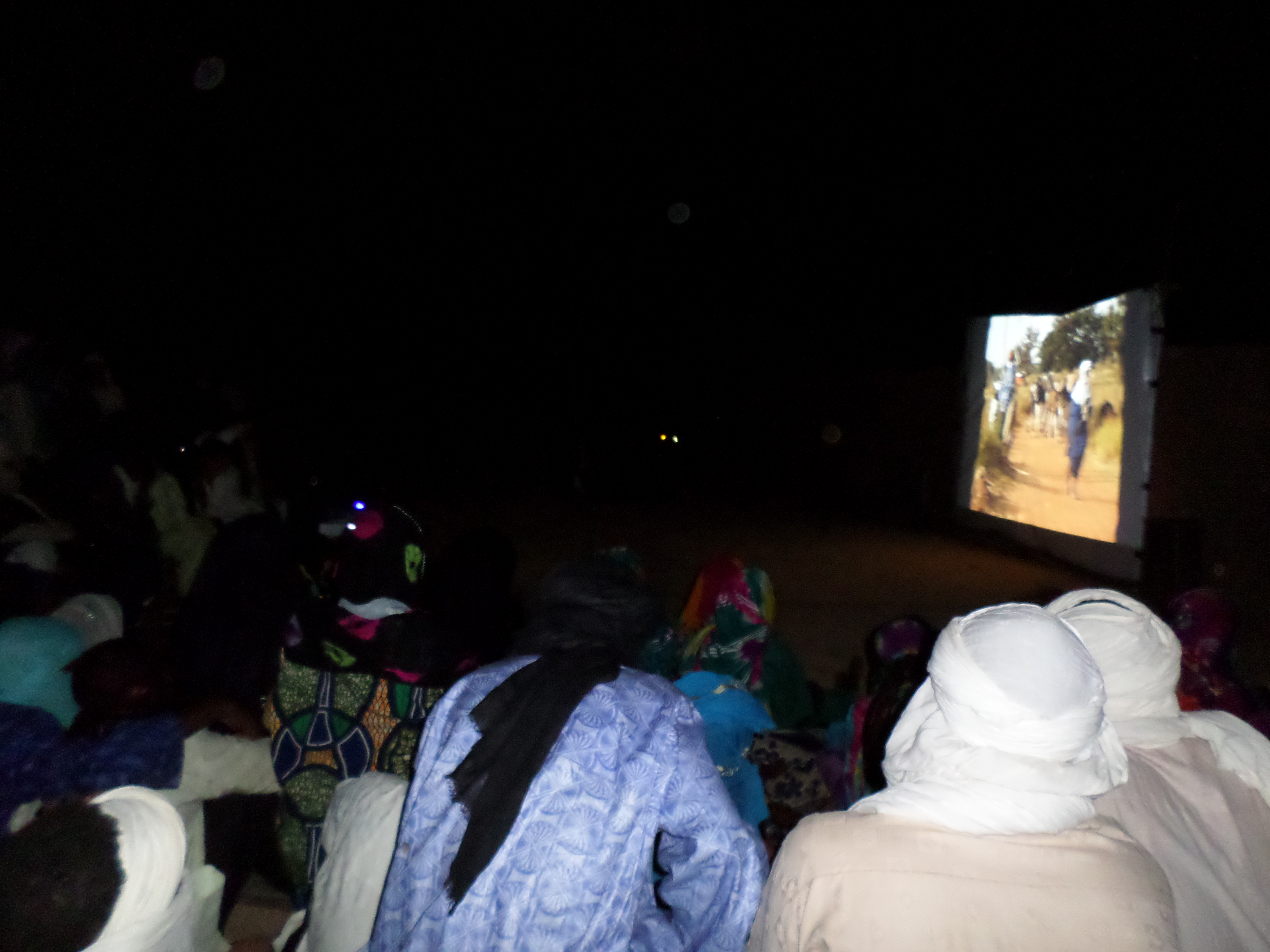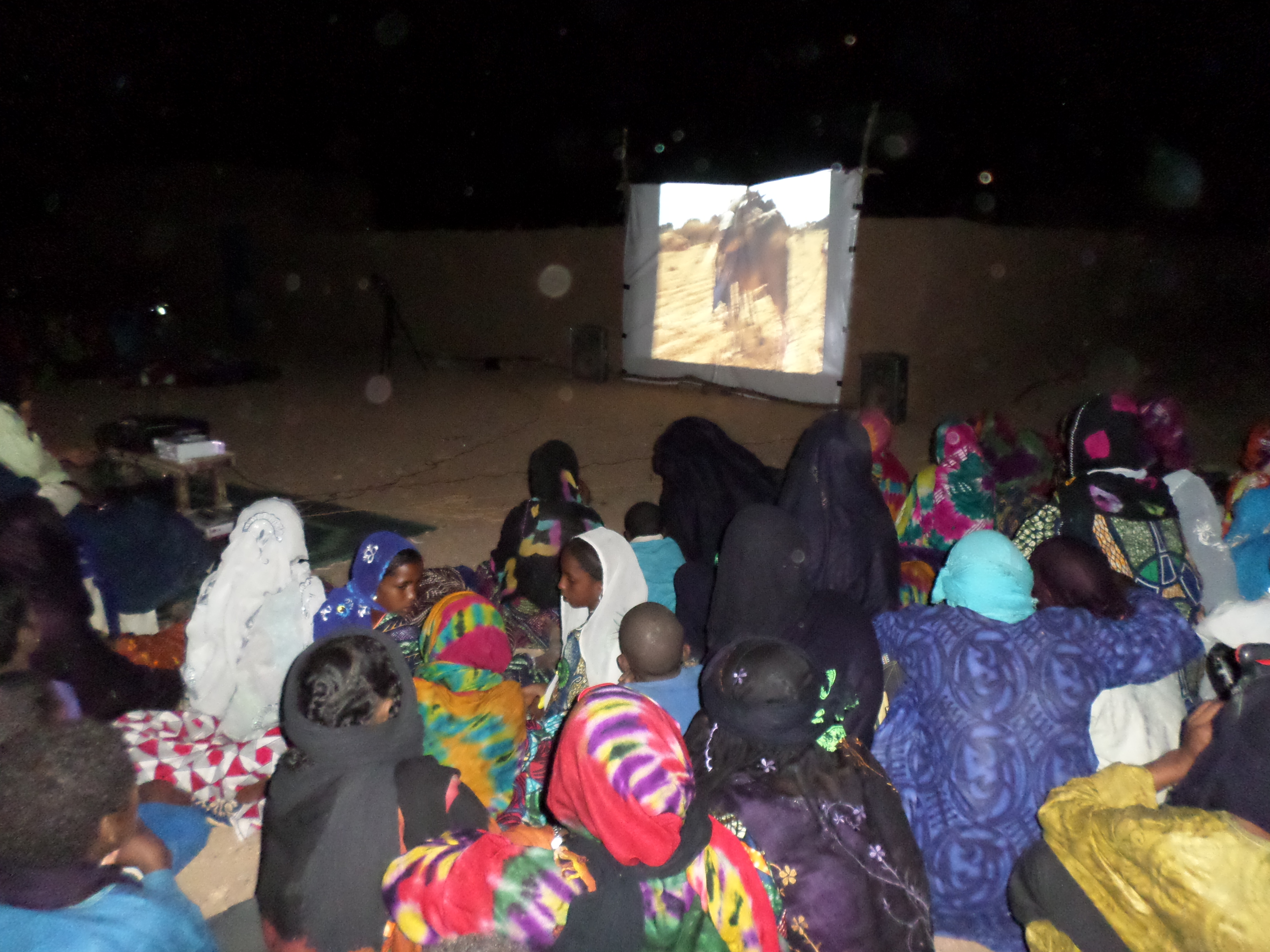 Projection dans le campement des caravaniers, sept 2016