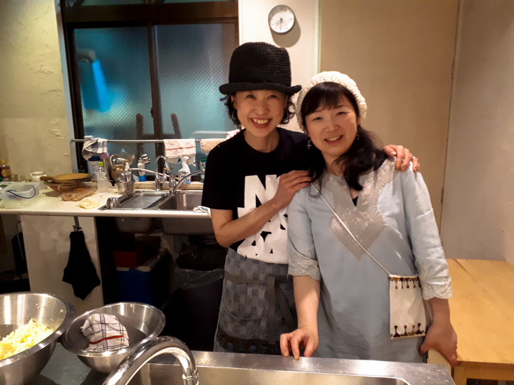 Los Barbados アフリカ料理店の友人、まゆみさんが作ってくれたミレットのフフとクスクスは皆様にとってとても新鮮な味でありながら、とても食べやすかったそうです。そしてアルジェリア人と結婚されている友人のなつえが作ったデーツのトリュフ、ラクダの目とデーツシロップケーキというオリジナルのアラブお菓子も大人気でした! 昔の友人、まゆちゃんもサハラ・エリキの副代表になり、元気に手伝ってくれました。