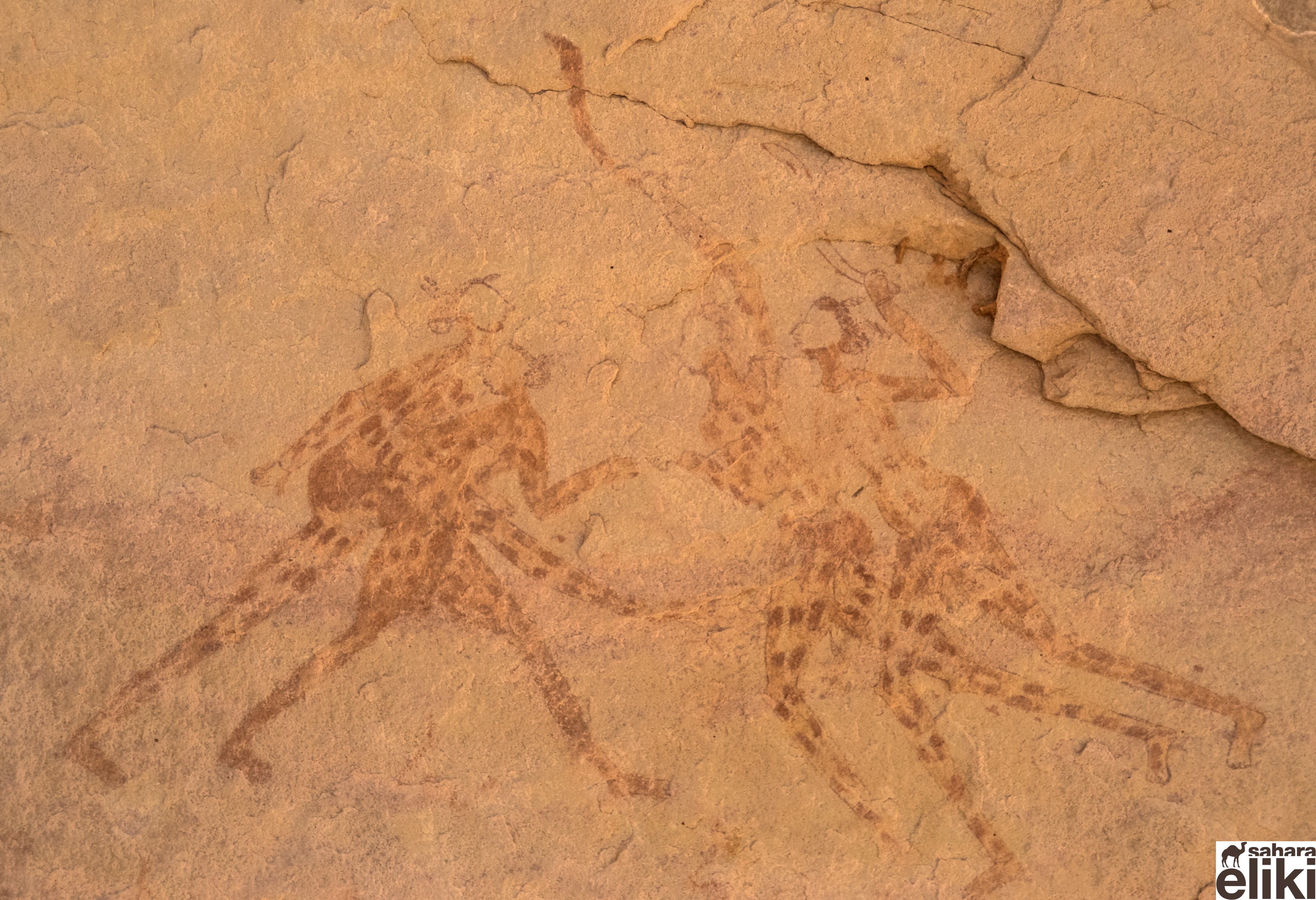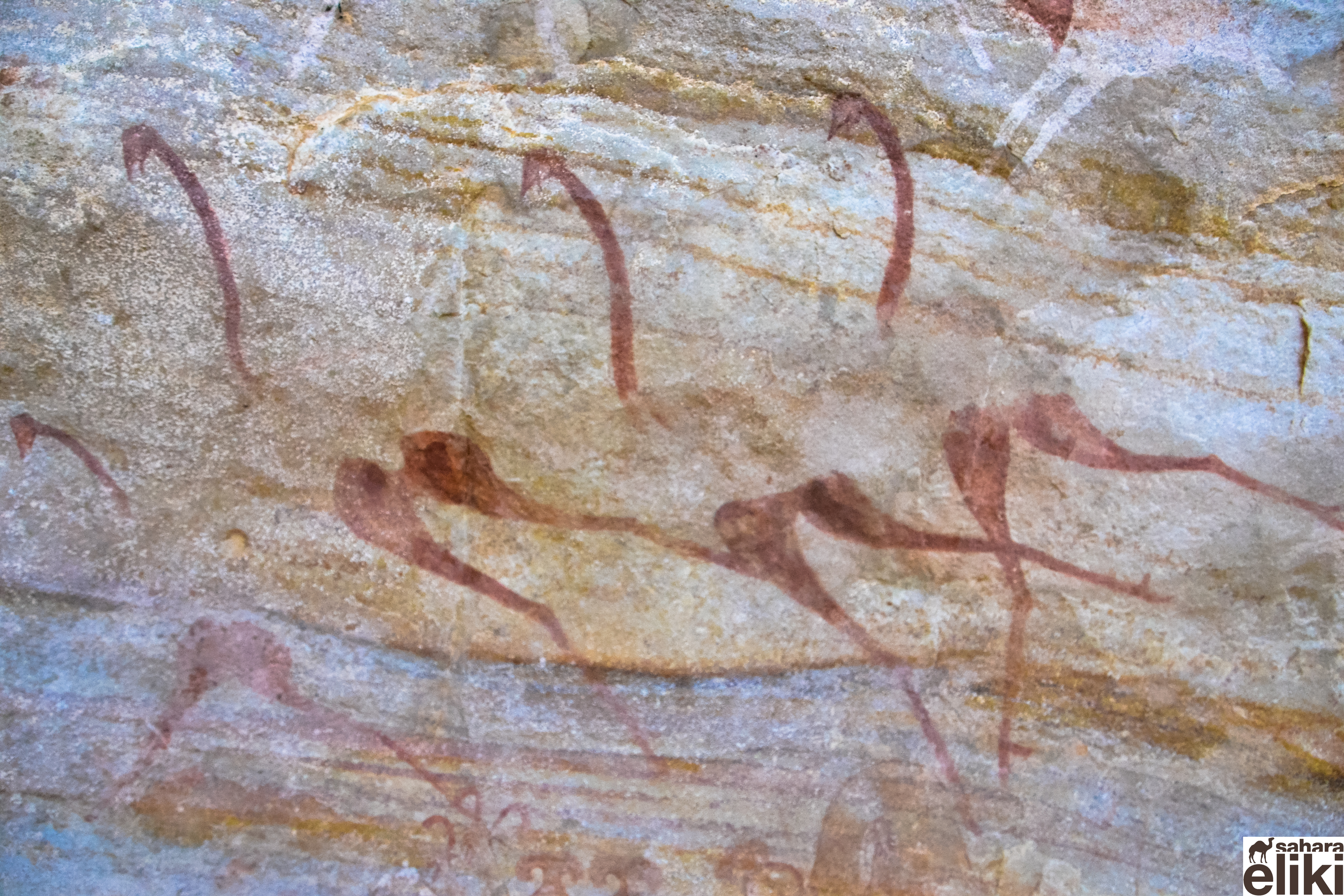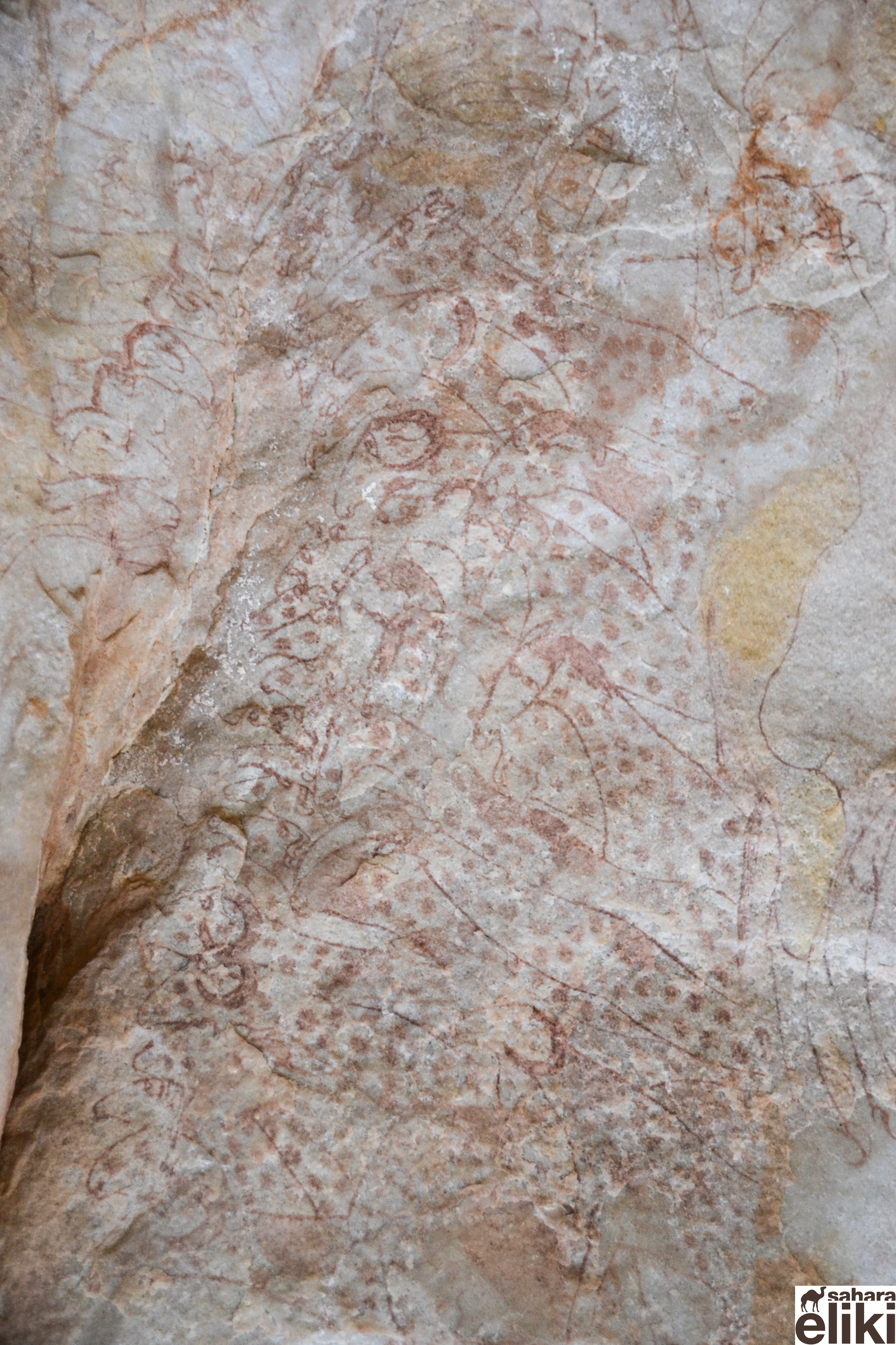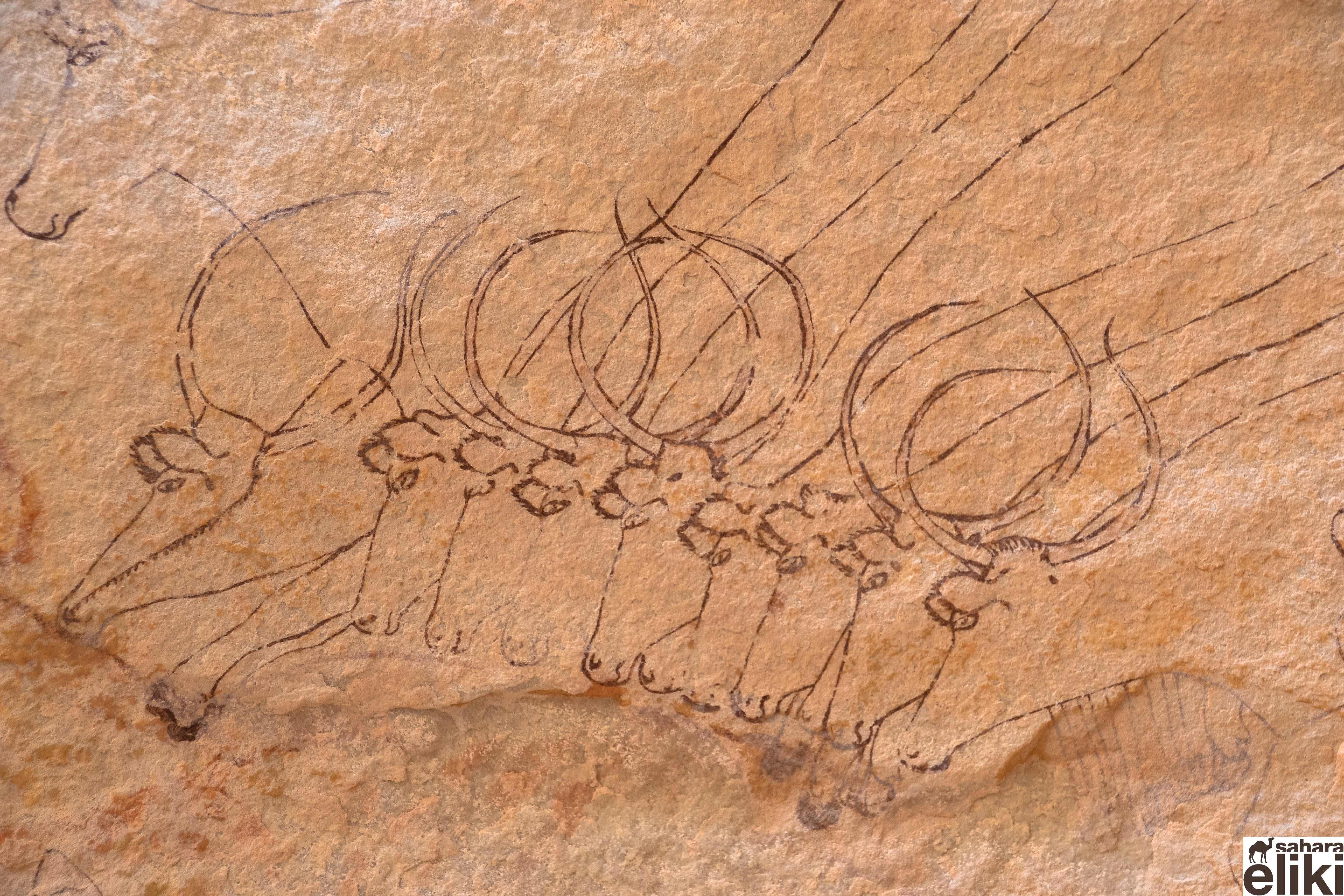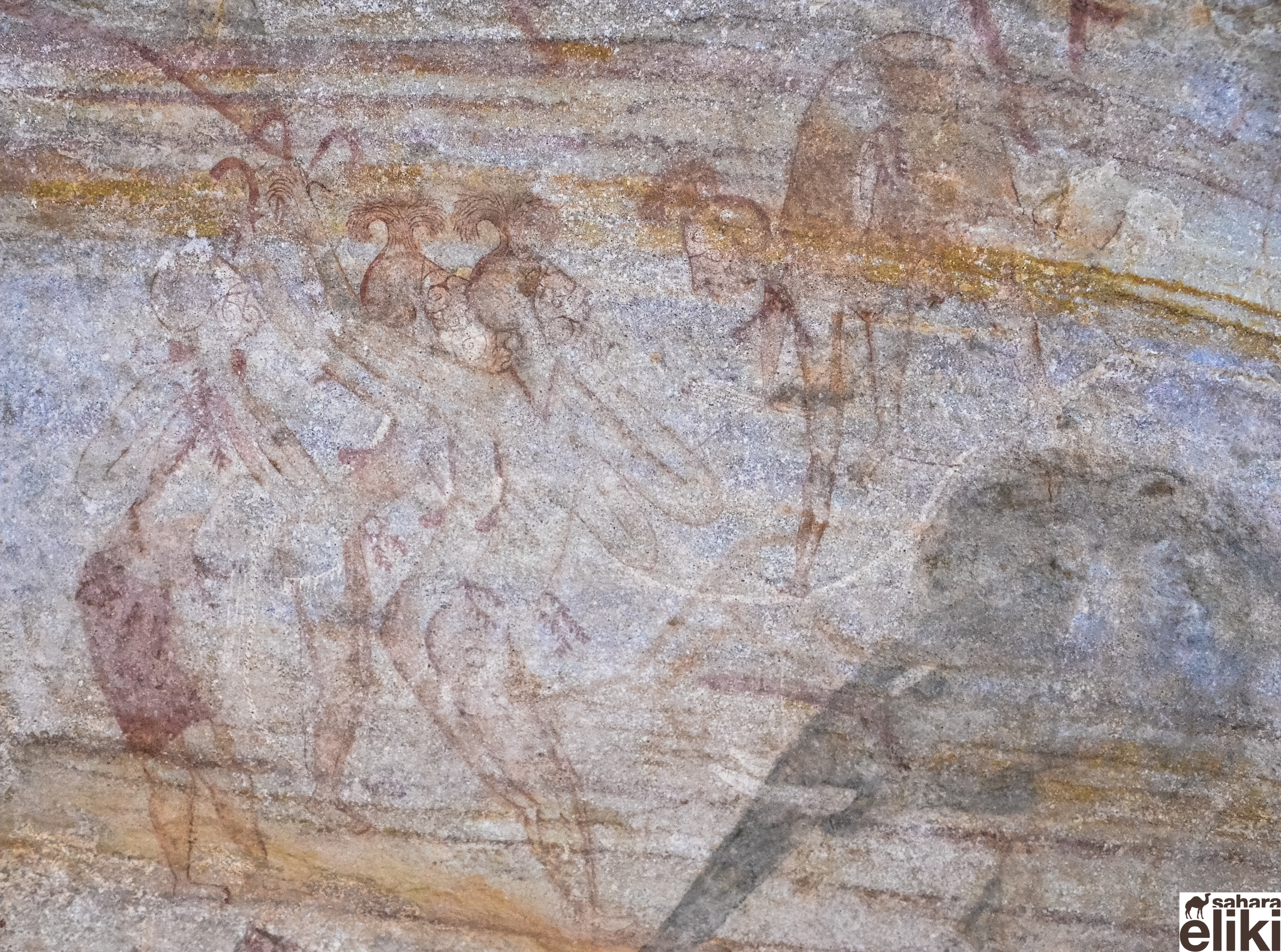 ジャネットより70キロ北にあるオアシス、エヘレル。そこからタジェラヒン台地を登るとタッシリ台地のもう一つの岩絵のメッカがあった。研究者によると、原始時代から残された岩絵は「白人の遊牧民」が描いた。