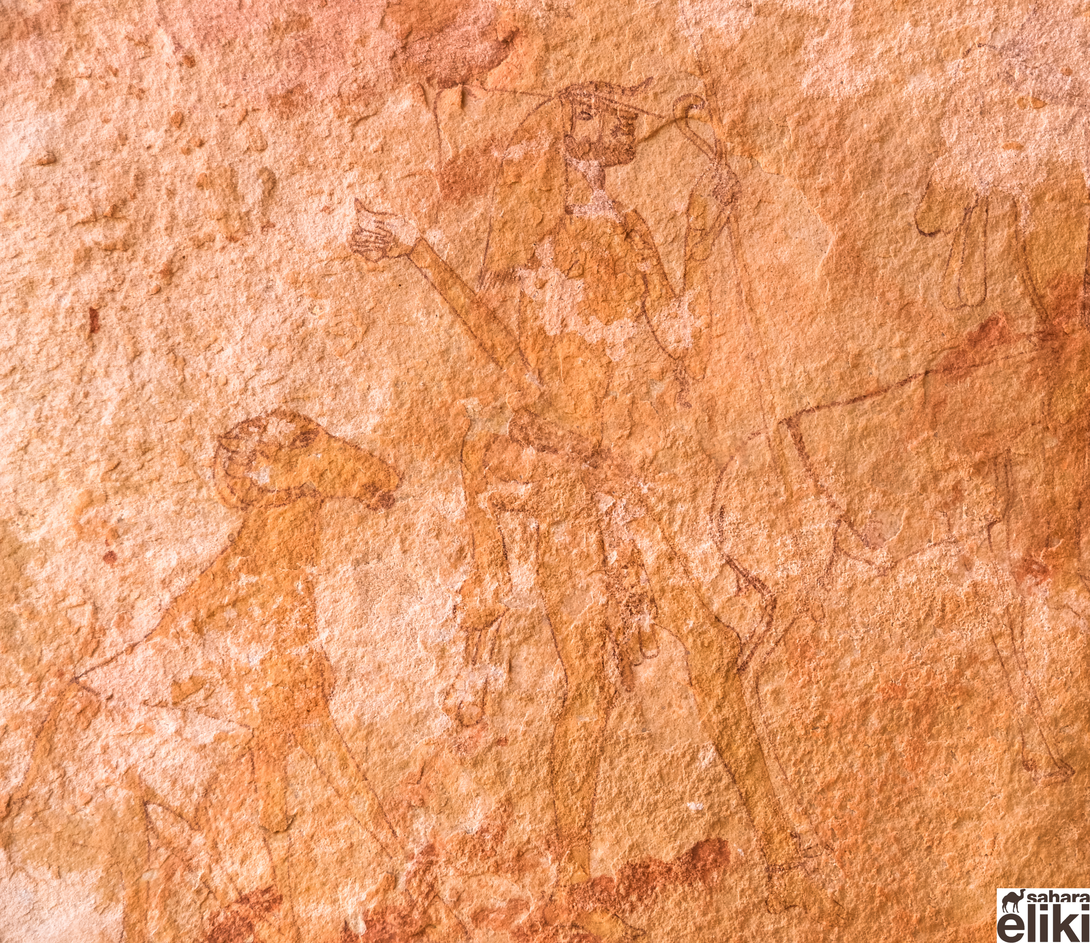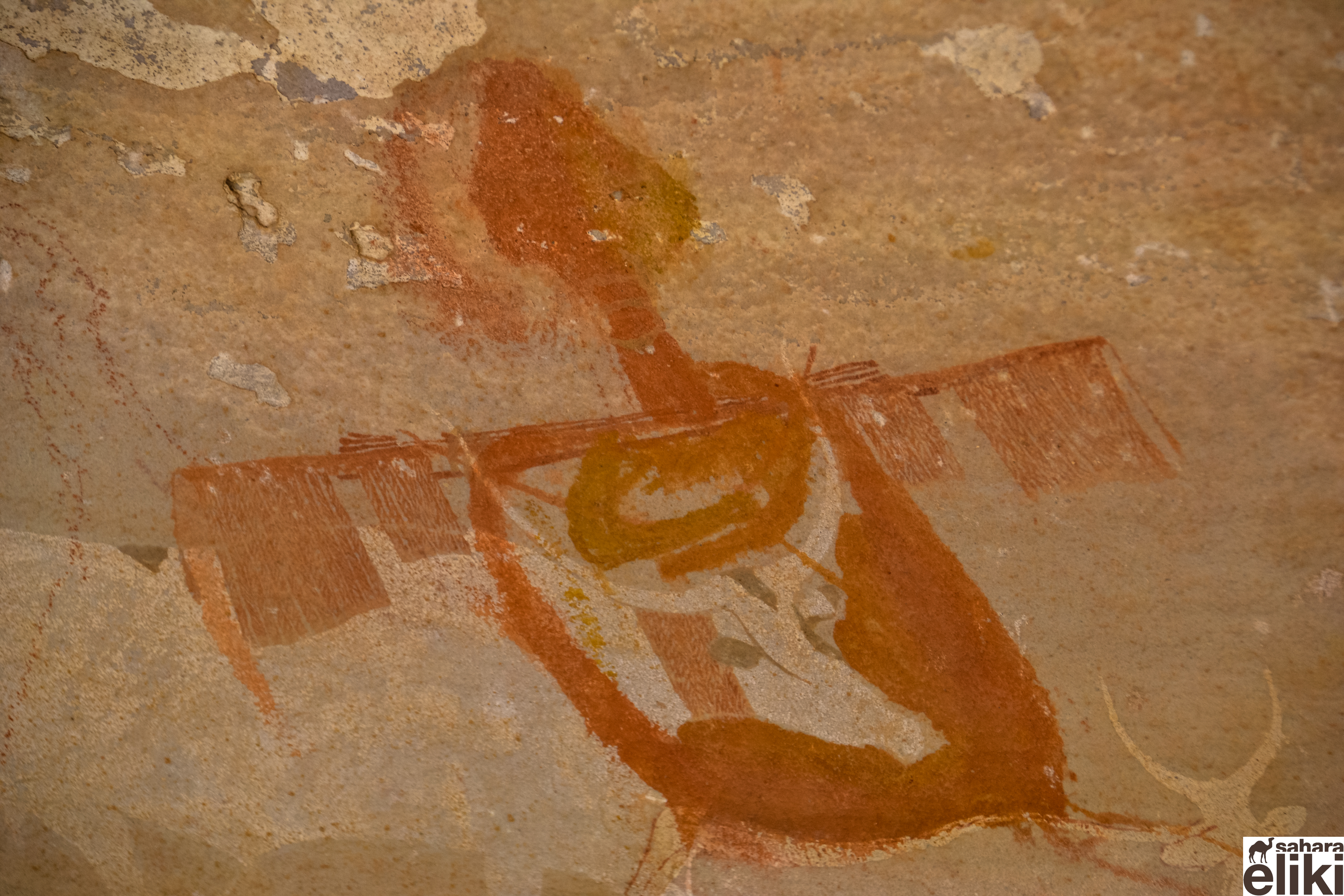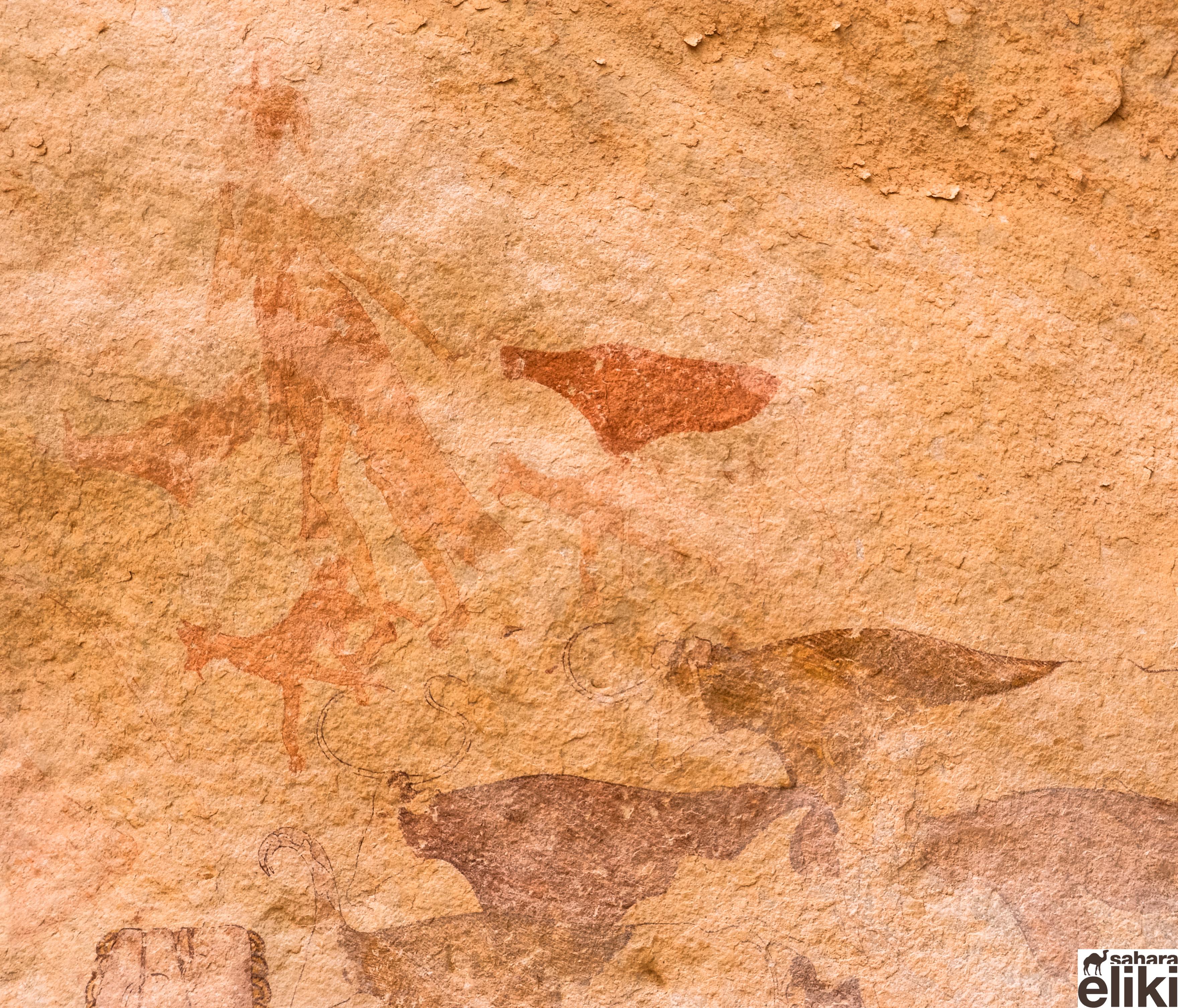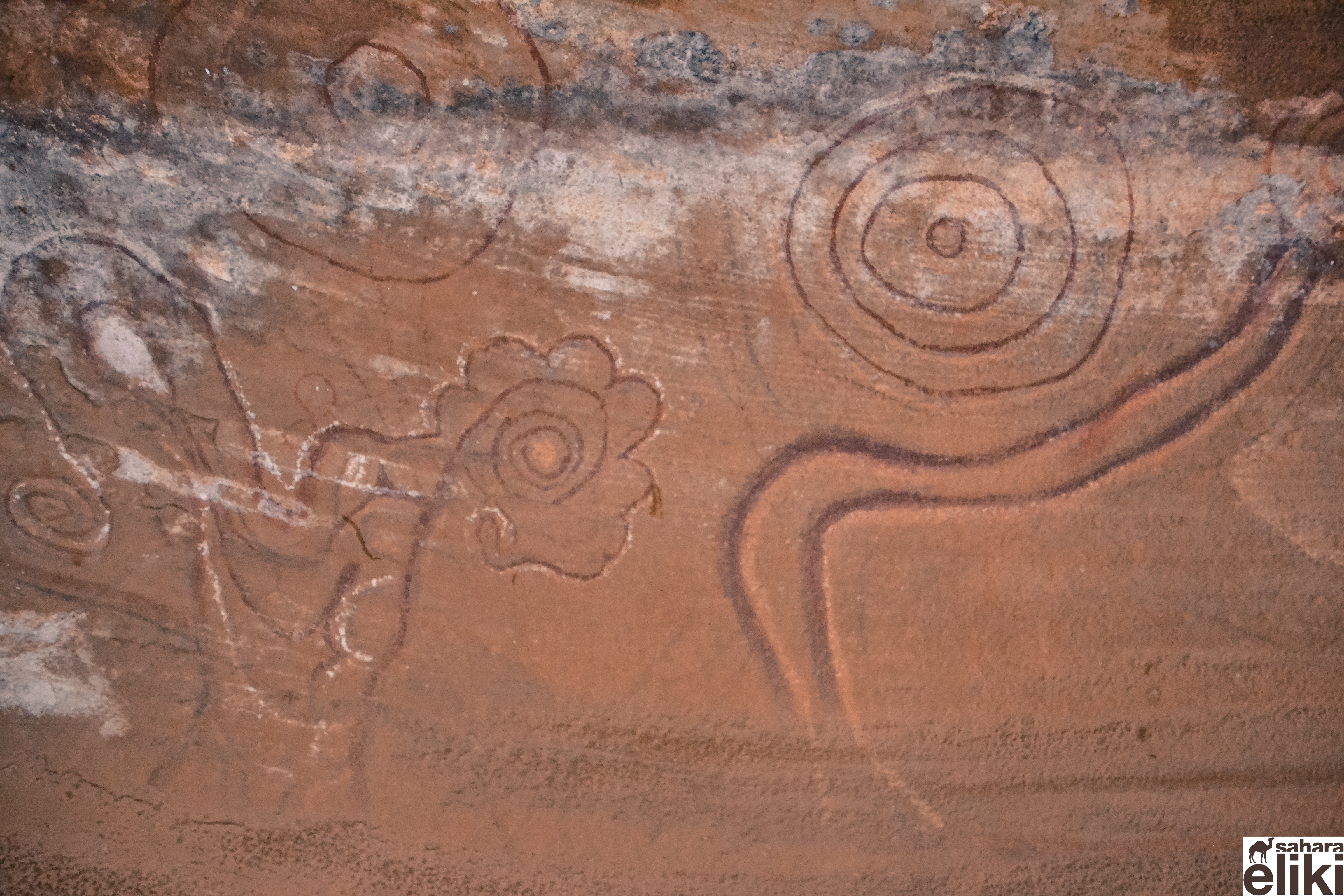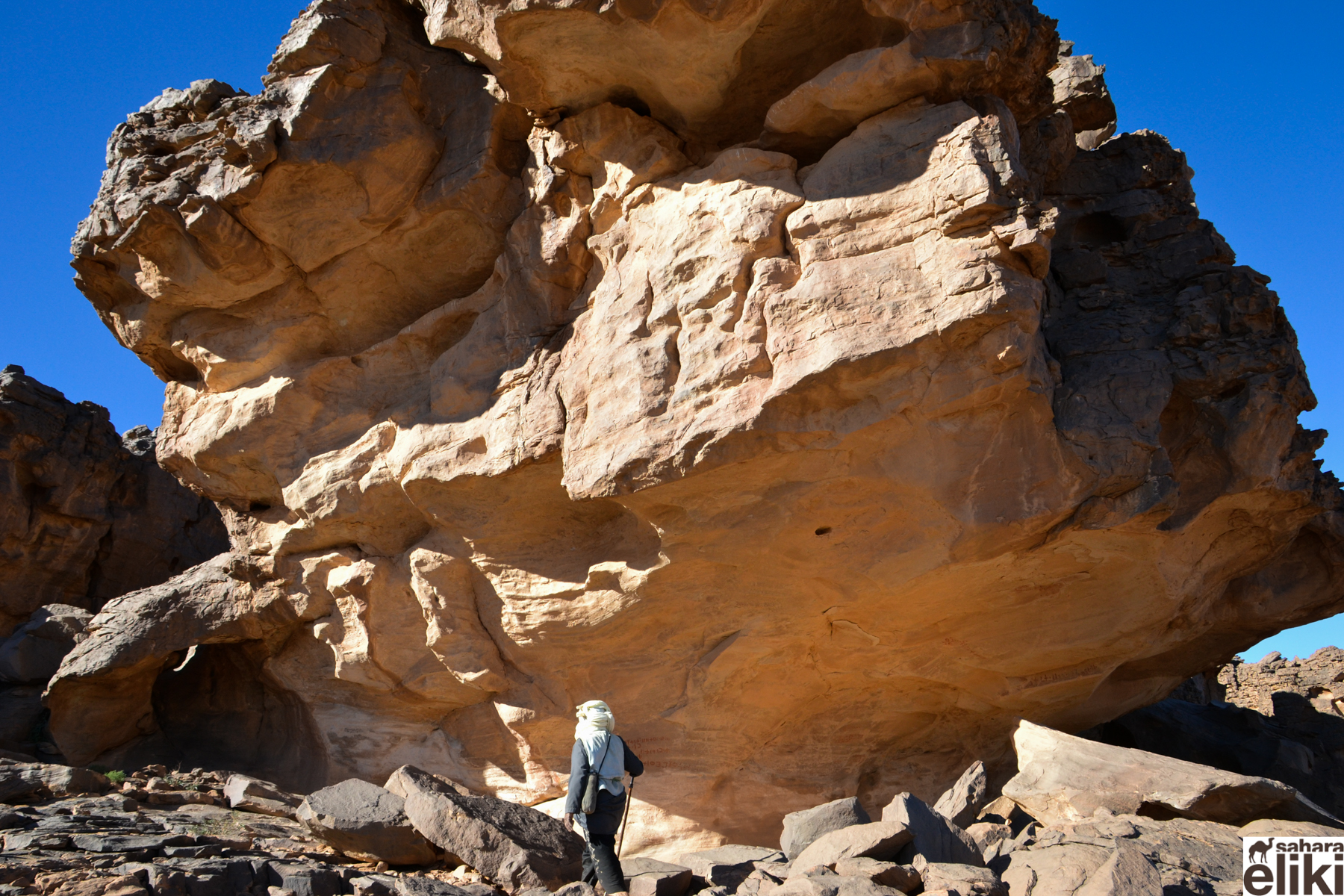 ジャネットより70キロ北にあるオアシス、エヘレル。そこからタジェラヒン台地を登るとタッシリ台地のもう一つの岩絵のメッカがあった。研究者によると、原始時代から残された岩絵は「白人の遊牧民」が描いた。