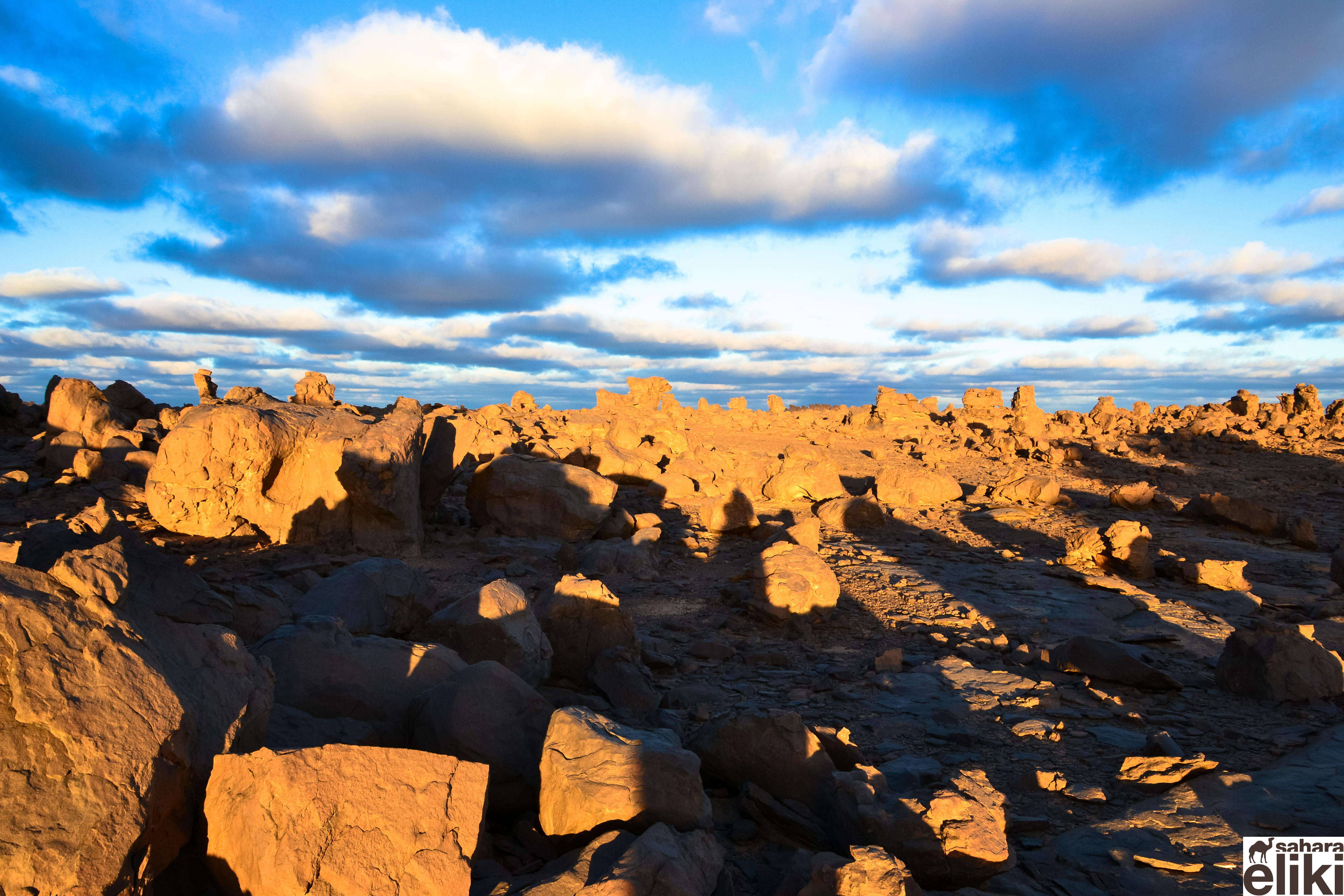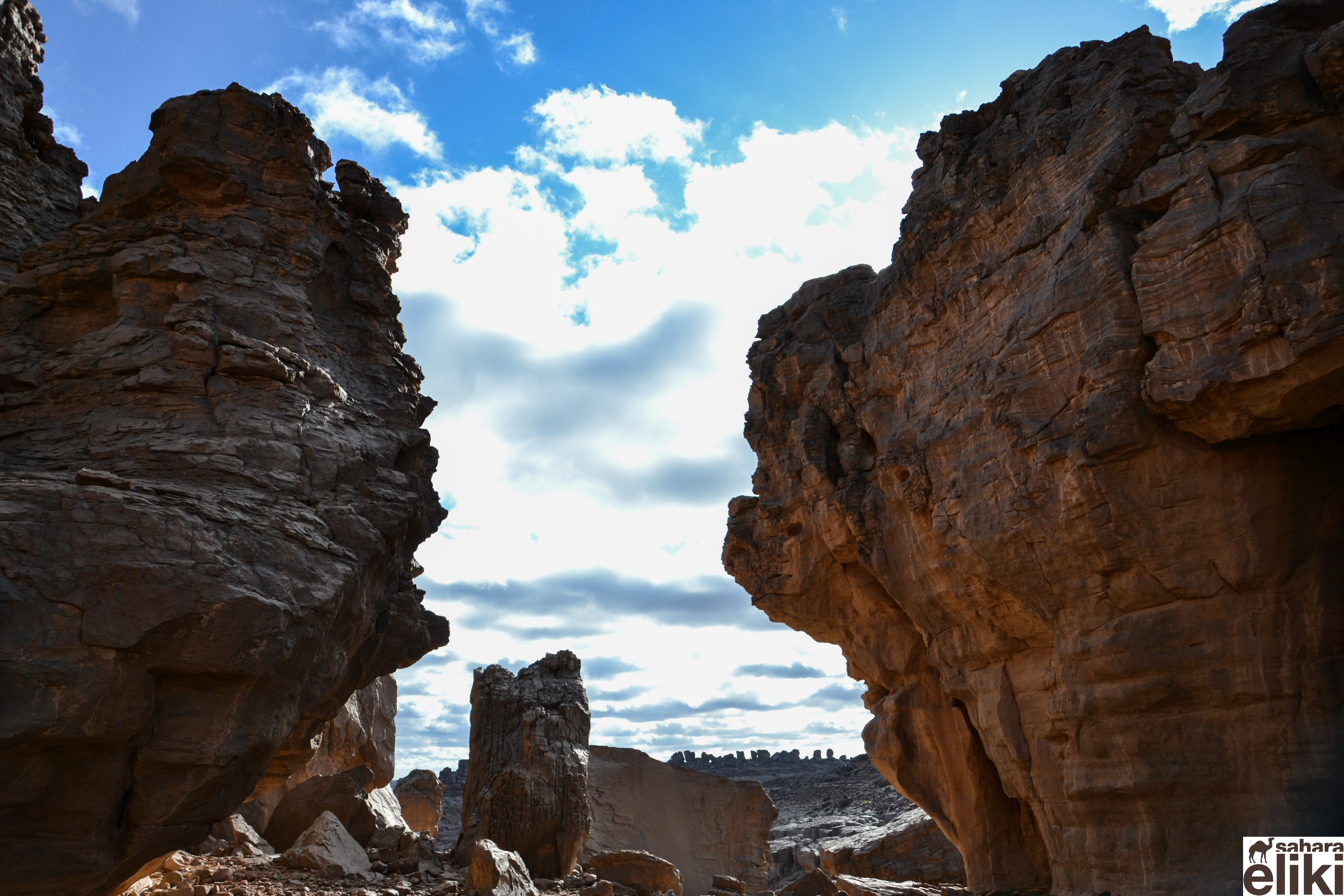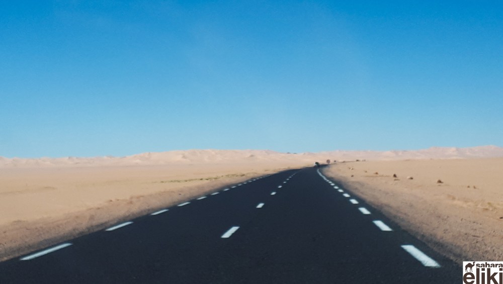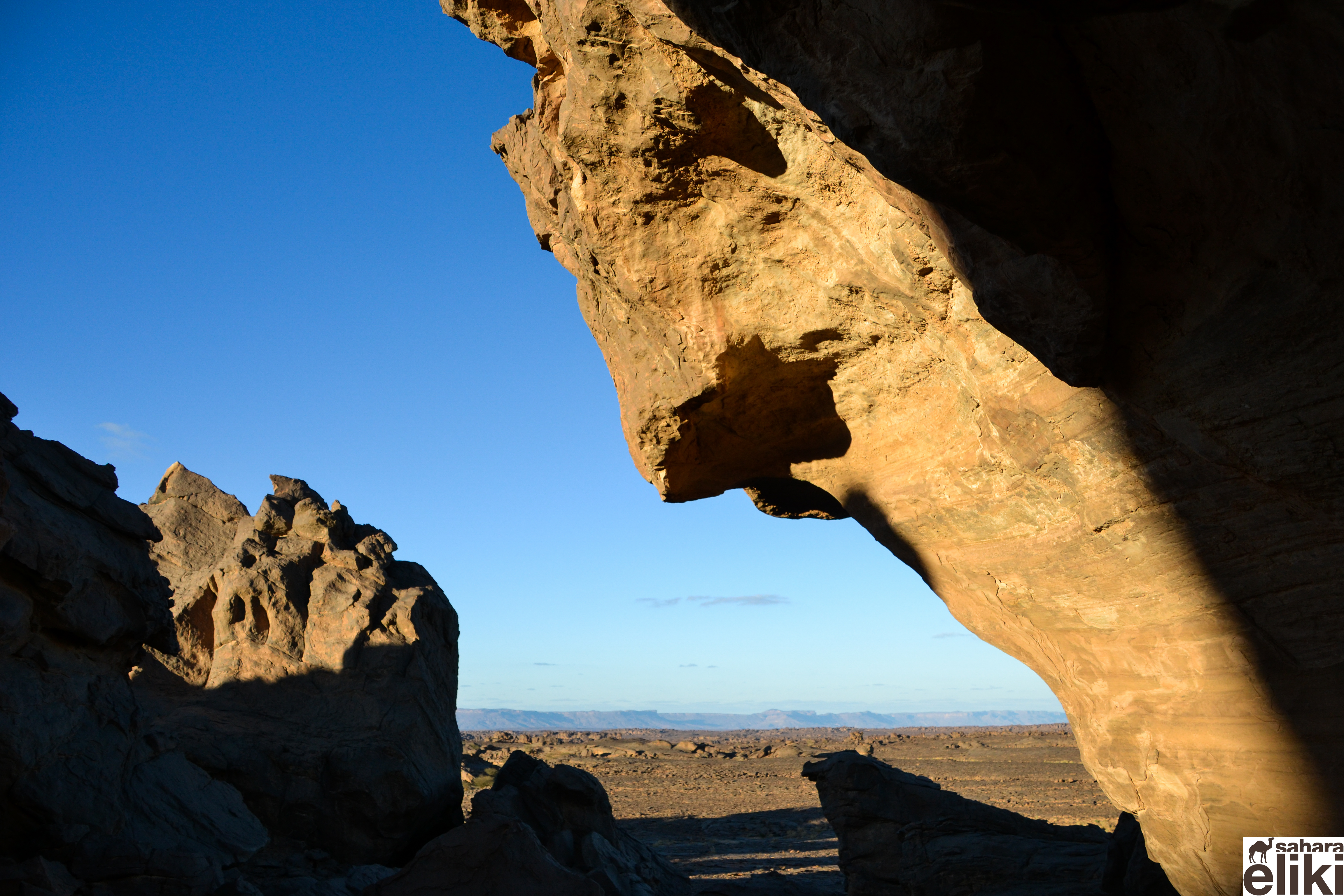 ジャネットからエレヘルのオアシスへ向かって国道を走った。同行しているのは溝口さん、大ちゃんとチカさんという日本人3名で、これからロバ隊と一緒にタジェラヒン台地を登って6日間を過ごす予定だ。10年ぶりのサハラ・エリキのツアーに興奮するが、私はパリの実家が今引っ越しなどで忙しくて、ウェスタンブーツ以外、ビーチサンダルしか持ってきていないのだ。そのビーサンを見てお客さんたちは「それで歩けますか」と心配そうに尋ねた。「ニジェールで3000キロの塩キャラバンもビーサンだったから、なんとかなる!」と答えるが、失敗したことすでに分かっていた。これから行く岩の砂漠はとても寒いのだ、、