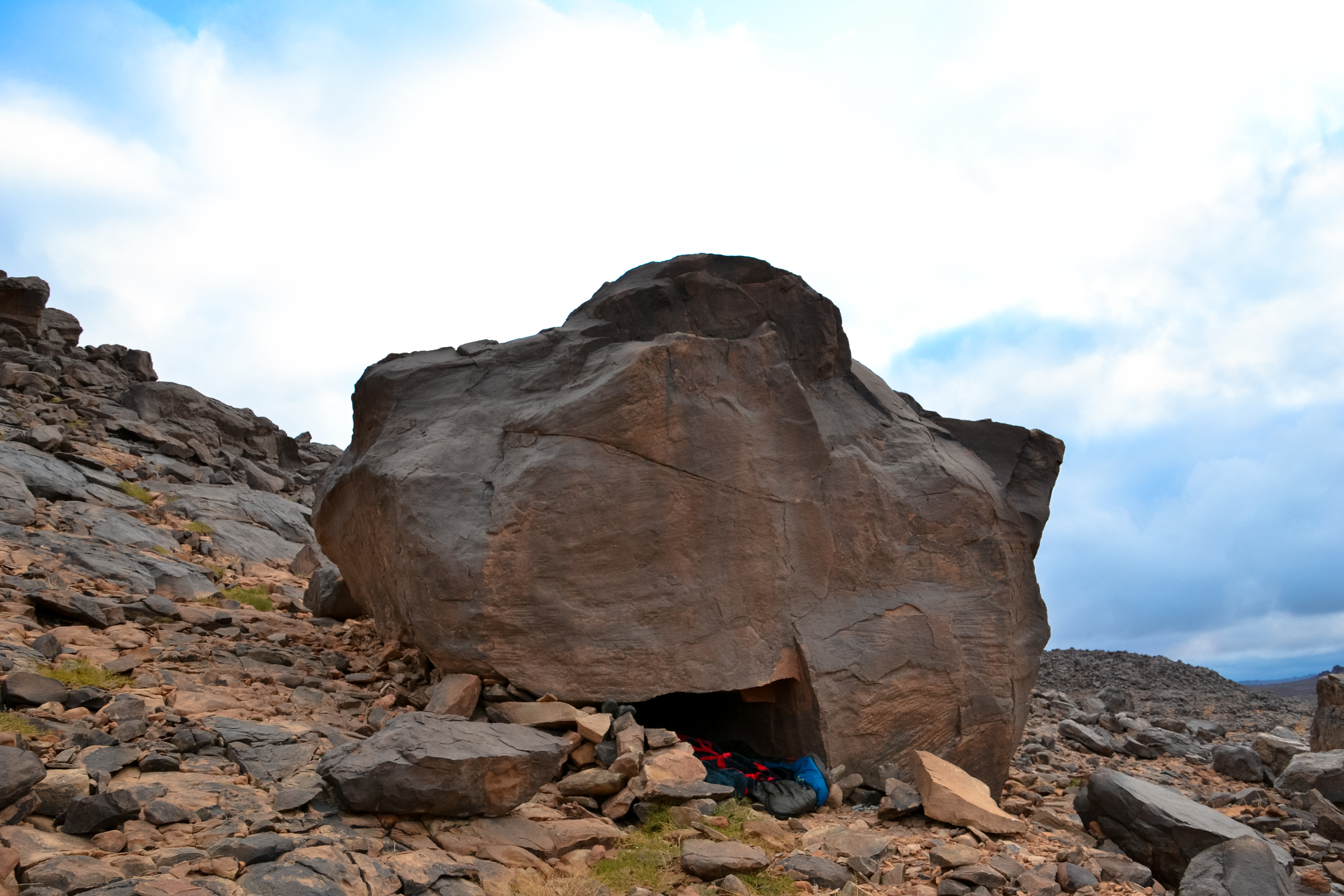 Lever dans la grotte au-dessus de l’oued. il a plu hier en pleine nuit et c’est une chance d’avoir dormi dans cet abri au chaud. Encore beaucoup de nuages et de froid mais le temps est sec ce matin. On a pris une photo souvenir de notre groupe tres hétéroclite, des entrepreneurs japonais, des âniers, un cowboy avec sa guitare, une journaliste..