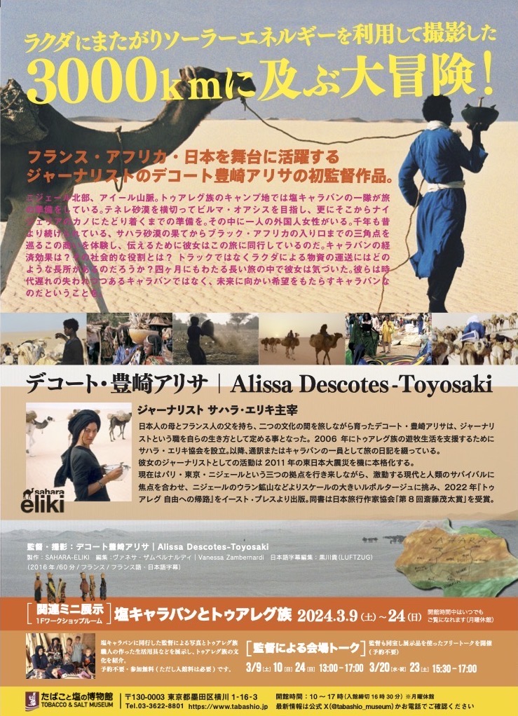 2020年にコロナで中止された東京の「たばこと塩の博物館」でのイベントはようやく実施することになりました。塩キャラバンとトゥアレグを大幅に紹介する3月9 ~ 24日までのイベントです!
