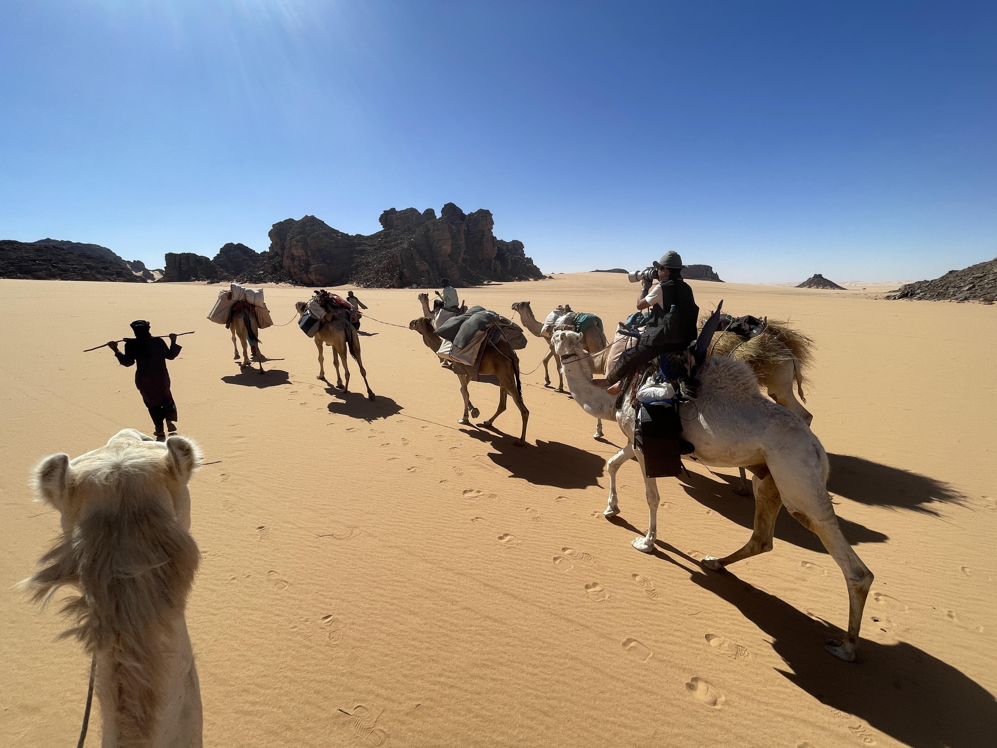 日間たっぷり楽しめるラクダ乗りキャラバン。トゥアレグ族のラクダ使いたちが乗り方も教えてくれます。12月末からのタッシリ・ナジェールは、日中は25度くらいで、過ごしやすい季節です。メールでお気軽に問合せてください。
