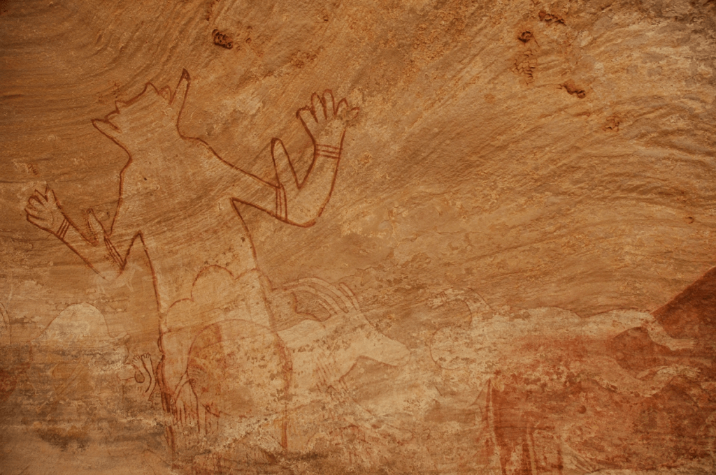 ジャネットから車で3時間移動してからリビアの国境に広がる「赤いタドラート」に着きます。オレンジ色の砂丘を囲む巨大な岩盤の稀有な砂漠が150キロも広がり、麒麟や象の岩絵もたくさん残っている絶景です。毎日車で移動し、岩絵を巡る時にガイドと一緒に砂漠を歩く形になります。ジャネット・オアシスから砂漠への出発は毎週の日曜日です。メールでお気軽に問合せてください。