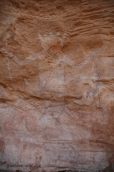 タジェラヒン台地の岩絵も年々薄くなり、近寄って見ないと判別出来ないものもある。イヘーレンの岩絵は観た者の心を太古へと誘う。岩棚の下で焚き火に当たり寒さに耐え、ジャッカルの遠吠えを子守唄に眠る。朝日と共に目を覚まし、今日もまた長い歩きが始まる。無言無心で歩き続けて、多くの岩絵を巡り、温かい飯が安らぎの時間。十年間求め続けたものがそこには在った。今も山羊を見ればその肉の味が口の中で蘇って来る。(2019年末〜2020年始)