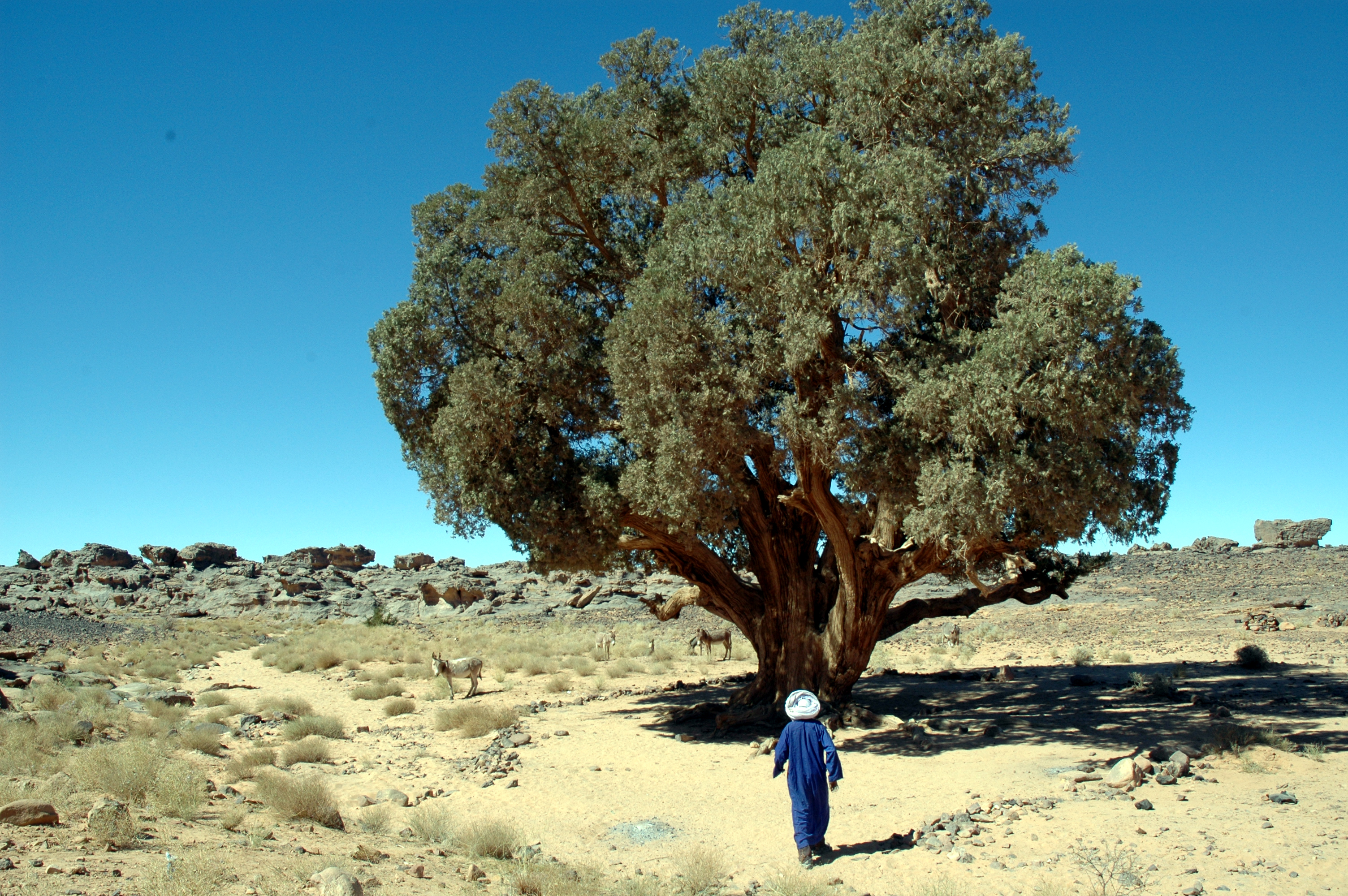 - →朝、ロバのキャラバンを伴い上り坂(5時間)。タムリトで昼食。タンズメイテック岩絵を見学。タムリトでキャンプする